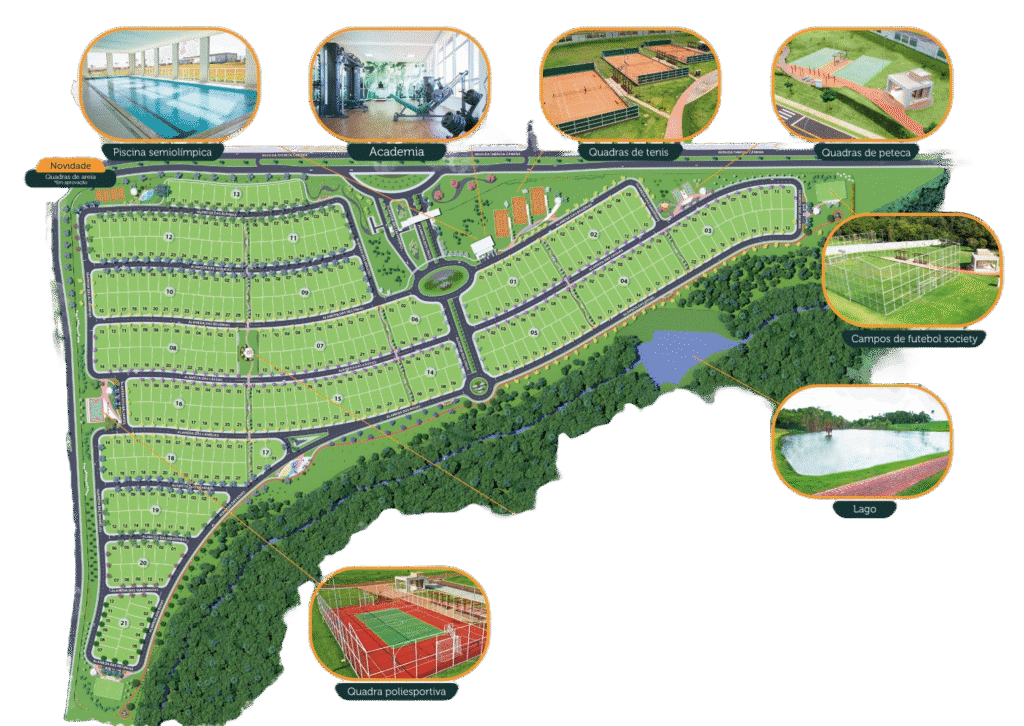 São 386 lotes residenciais, com metragens entre 400m² e 800m².